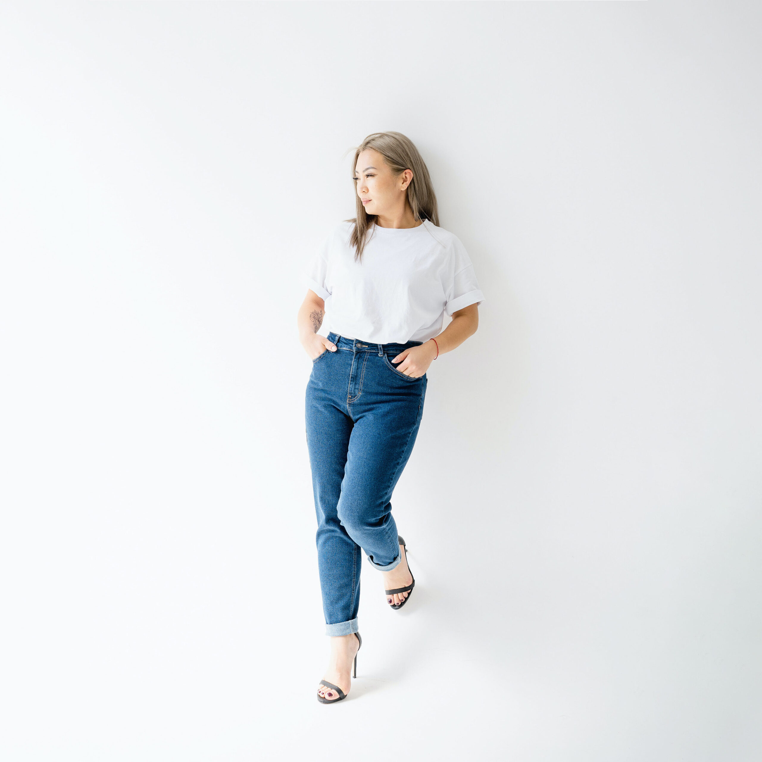 Mid-Waist White Jeans