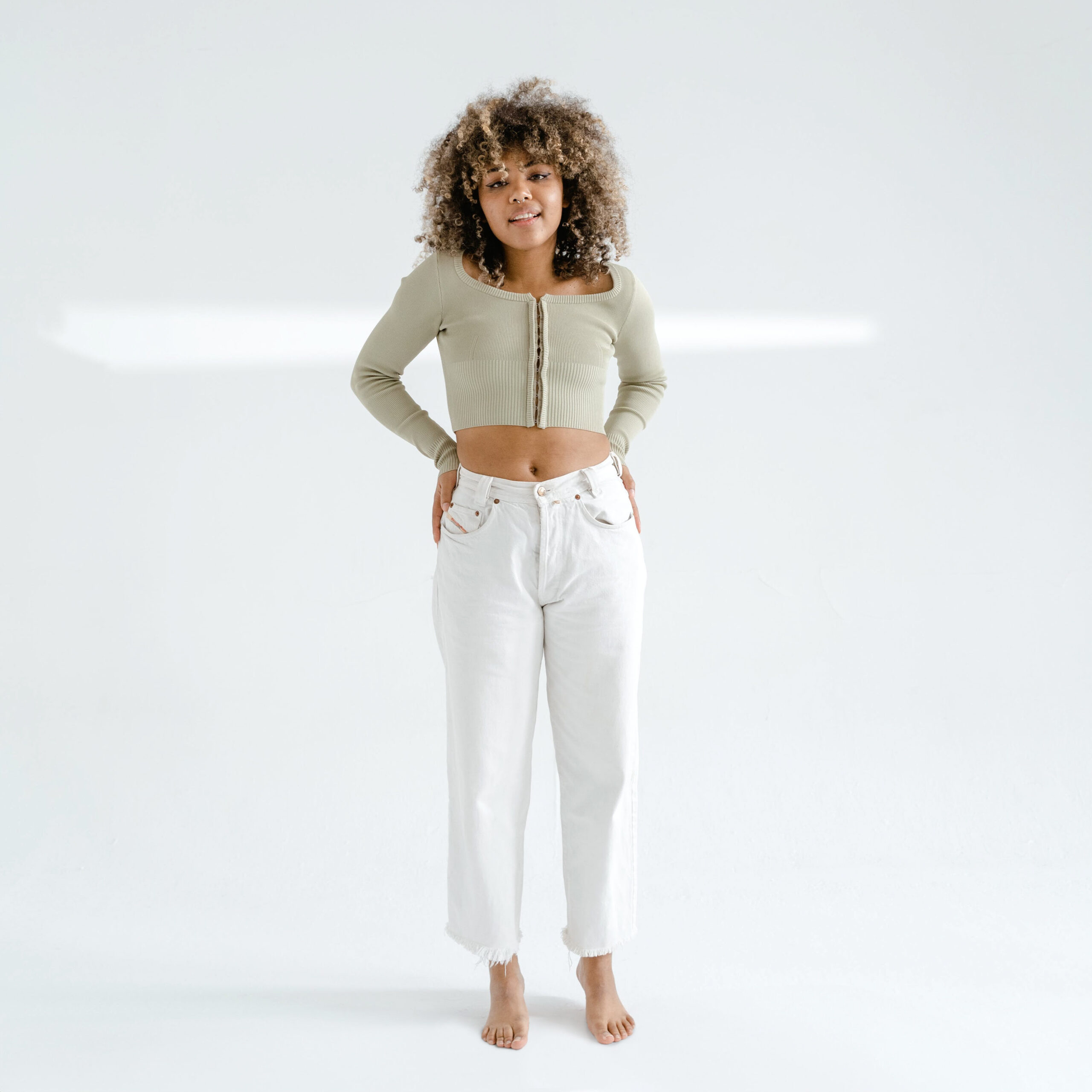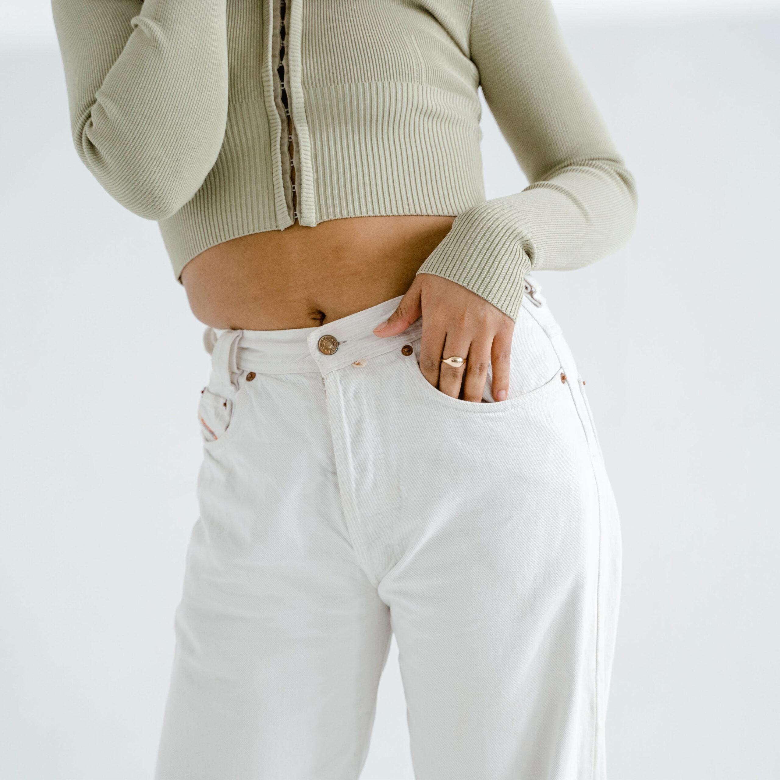 Mid-Waist White Jeans